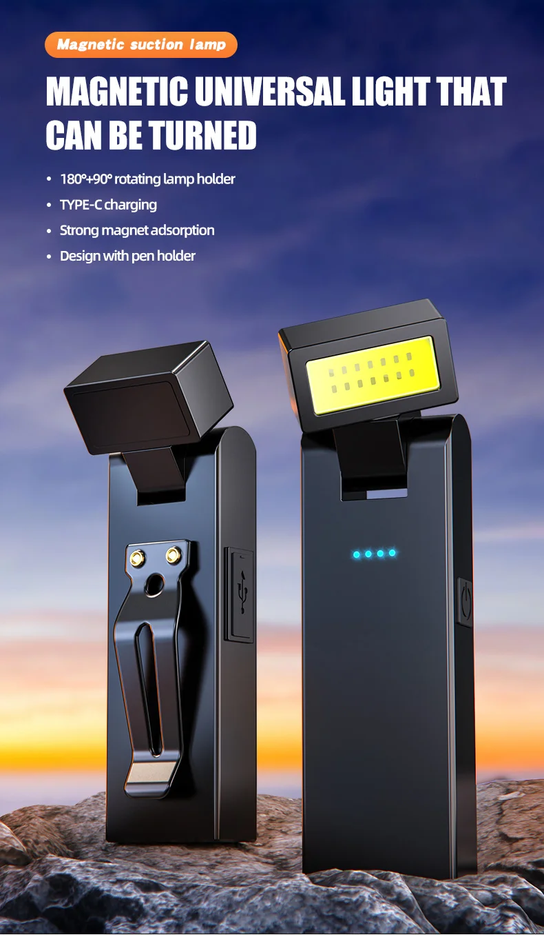 Magnetic Work Light Rechargeable COB Flashlight Suitable for Night Work Emergency Lamp Night Light Small Car Lamp
